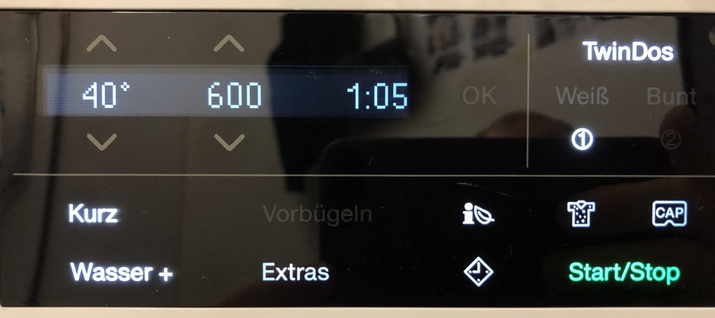 90% der Waschmaschinen in Deutschland haben durch eine regelmäßig zu hohe Dosierung noch Waschmittelrückstände in der Trommel. Daher raten wir zu einer etwas geringeren Dosierung als vorgegeben. In der Praxis haben wir die Erfahrung gemacht, jede Wäsche bei 40°C zu waschen. Bei einer Temperatur von 40°C lassen sich Fette leichter entfernen, als mit 30°C.